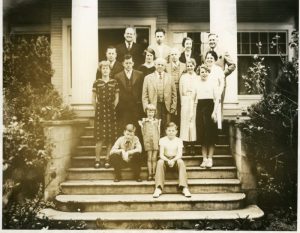 Family, shown at Mottman Mansion, photograph from Mottman Collection, shows all six children, third wife Emma Galliher, George A. Mottman and grandchildren