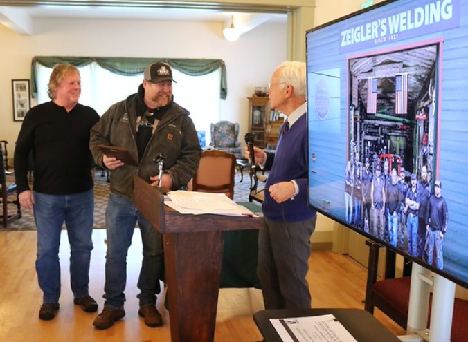 In closing, this award to Zeigler’s Welding, recognizes the company’s proactive stewardship of preserving the character of this 114-year-old building that represents a different era in the city’s history. And a commitment to keep the business in downtown Olympia. We also honor and recognize you for sustaining the company’s heritage of good, old fashion personal service, customer satisfaction, and quality craftsmanship. Jeff and Chad, please step forward to receive your award.