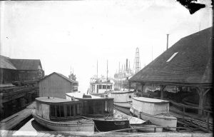 Looking Back’s theme for 2026 is Downtown by the Decades. In about 1914, photographer Robert Esterly produced a valuable series of photographs of downtown businesses. This photograph captures the bustle of Olympia’s waterfront, with vessels of all sizes and types, and associated industries. Image selected and captioned by Deborah Ross on behalf of the Olympia Historical Society and Bigelow House Museum, https://olympiahistory.org.